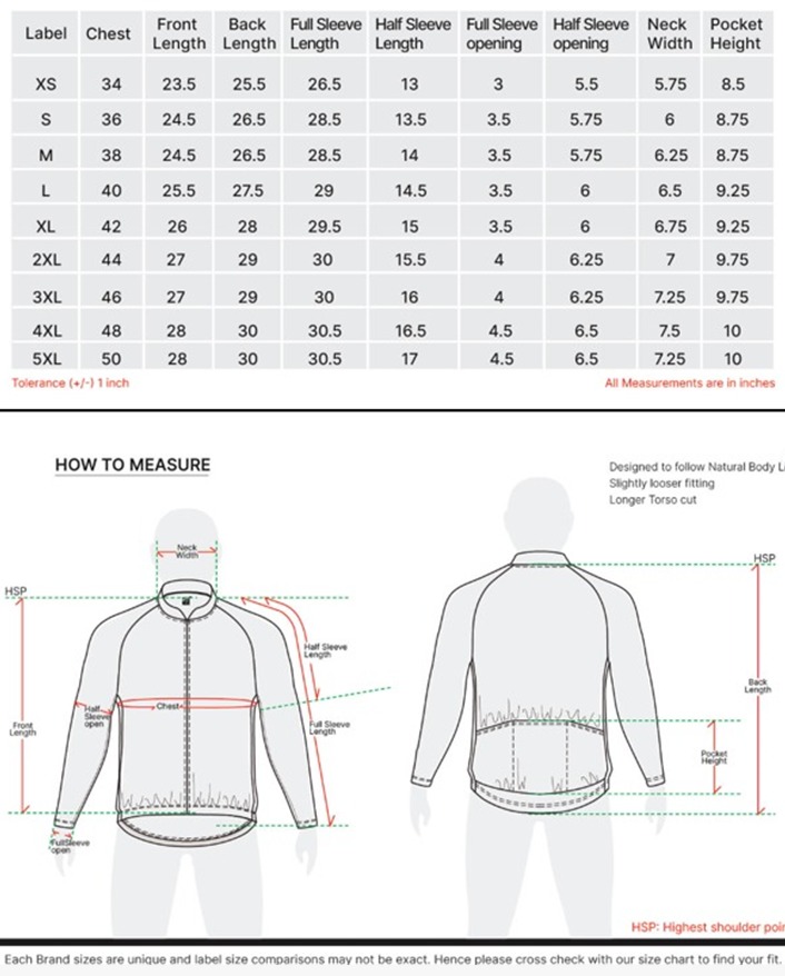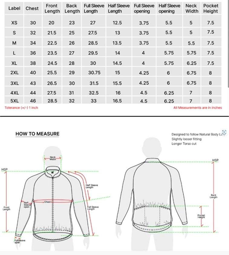 - Ergonomic Sleeves - Half Sleeves / Full Sleeves with cuff fitting for maximum mobility
